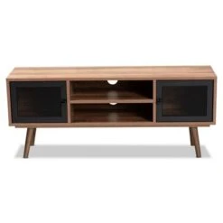 Yuna Natural Wood And Metal 2 Door TV Stand For TVs Up To 40″ Brown/Black – Baxton Studio