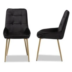 2pc Eris Tan Leather Upholstered And Metal Dining Chairs Black/Tan – Baxton Studio