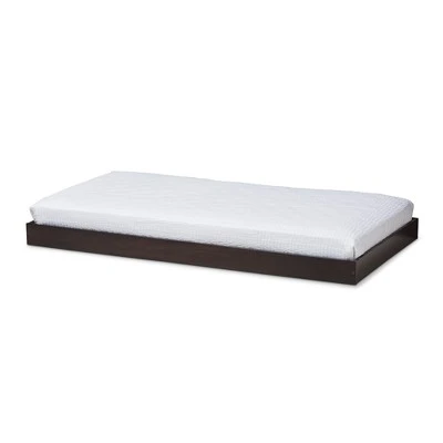 Sometimes you need a little help saving space – do it in style with the Peyton trundle. The minimalist design draws inspiration from modern and contemporary design. The Peyton is constructed of engineered wood and made to last. This trundle features four wheels to function as a roll out trundle underneath a twin size frame. The Peyton is available in brown, dark brown, grey, and white finishing, making it easy to coordinate with your existing bed. This trundle is designed for use with one twin size mattress. Made in Malaysia, the Peyton requires assembly.